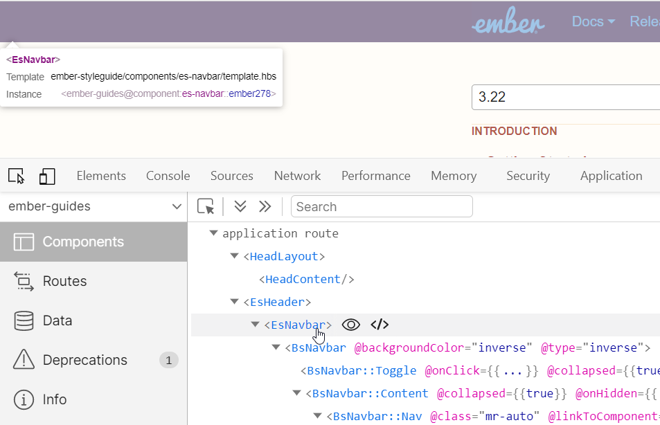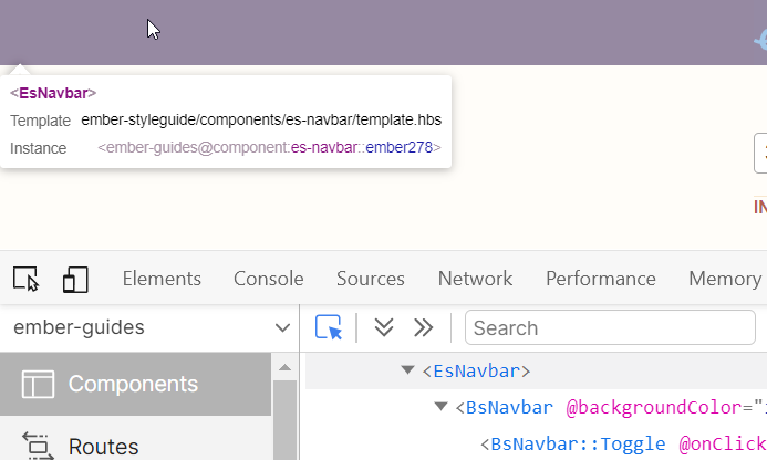 If you want to highlight a component directly within your app, click on the icon to the left of the search bar. As your mouse passes over it, the related component will be highlighted.