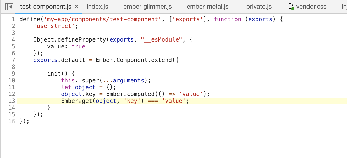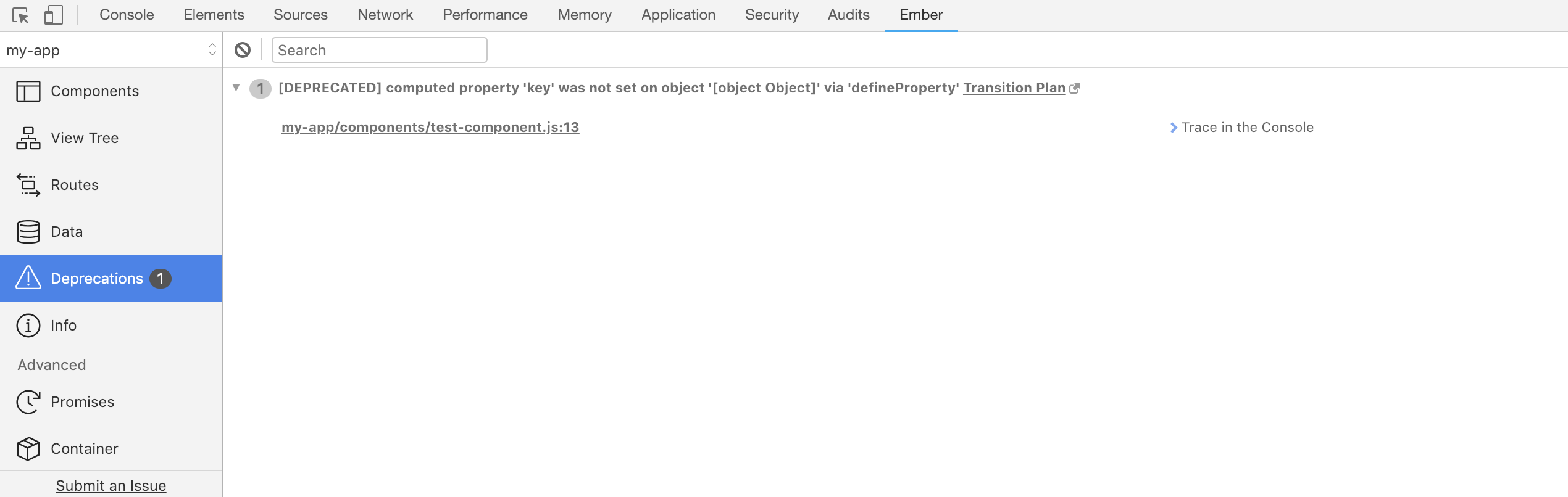 If you are using Ember CLI and have source maps enabled, you can see a list of sources for each deprecation. If you are using Chrome or Firefox, clicking on the source opens the sources panel and takes you to the code that caused the deprecation message to be displayed.
